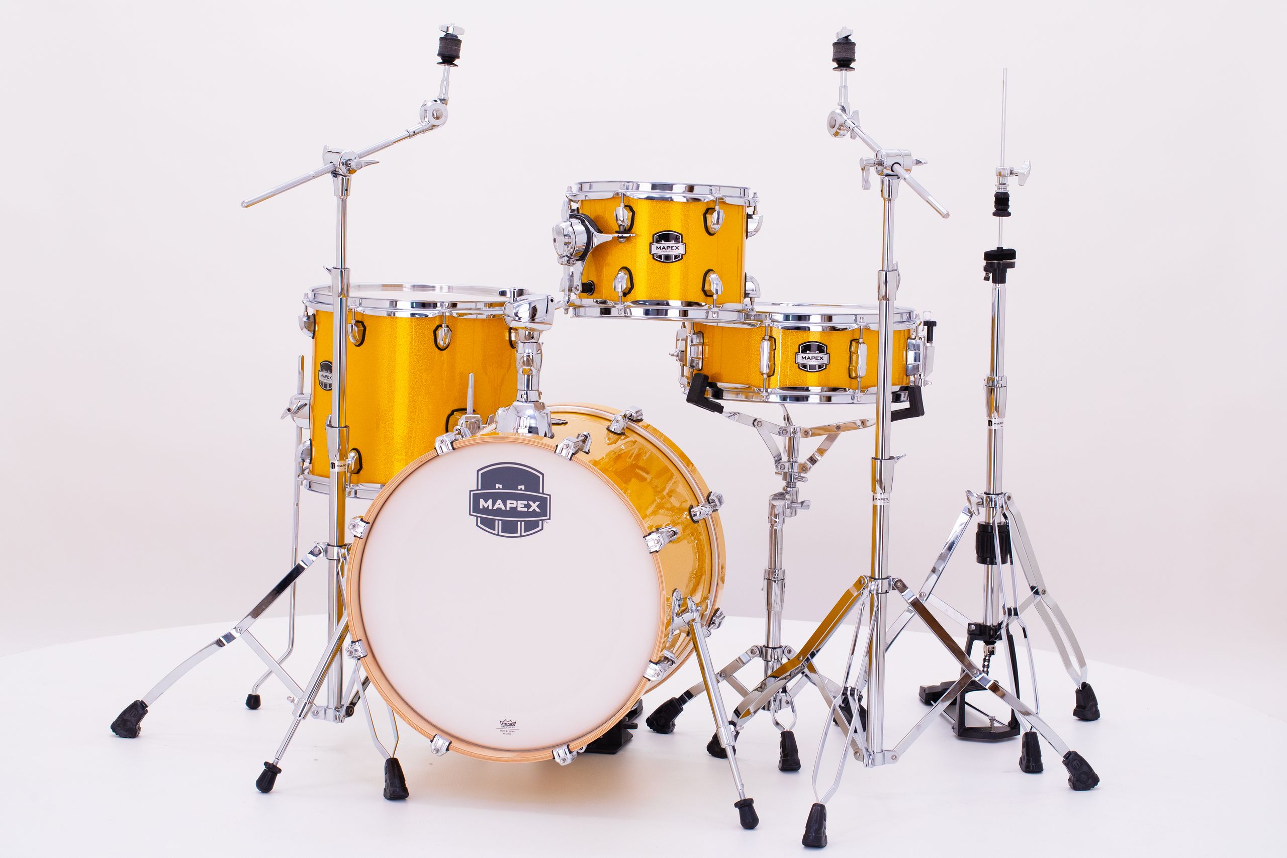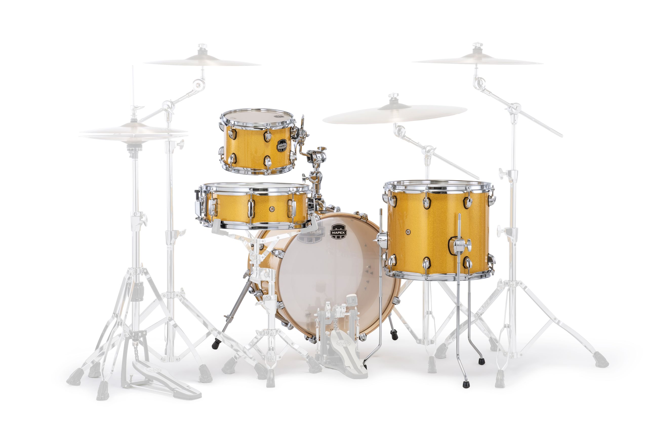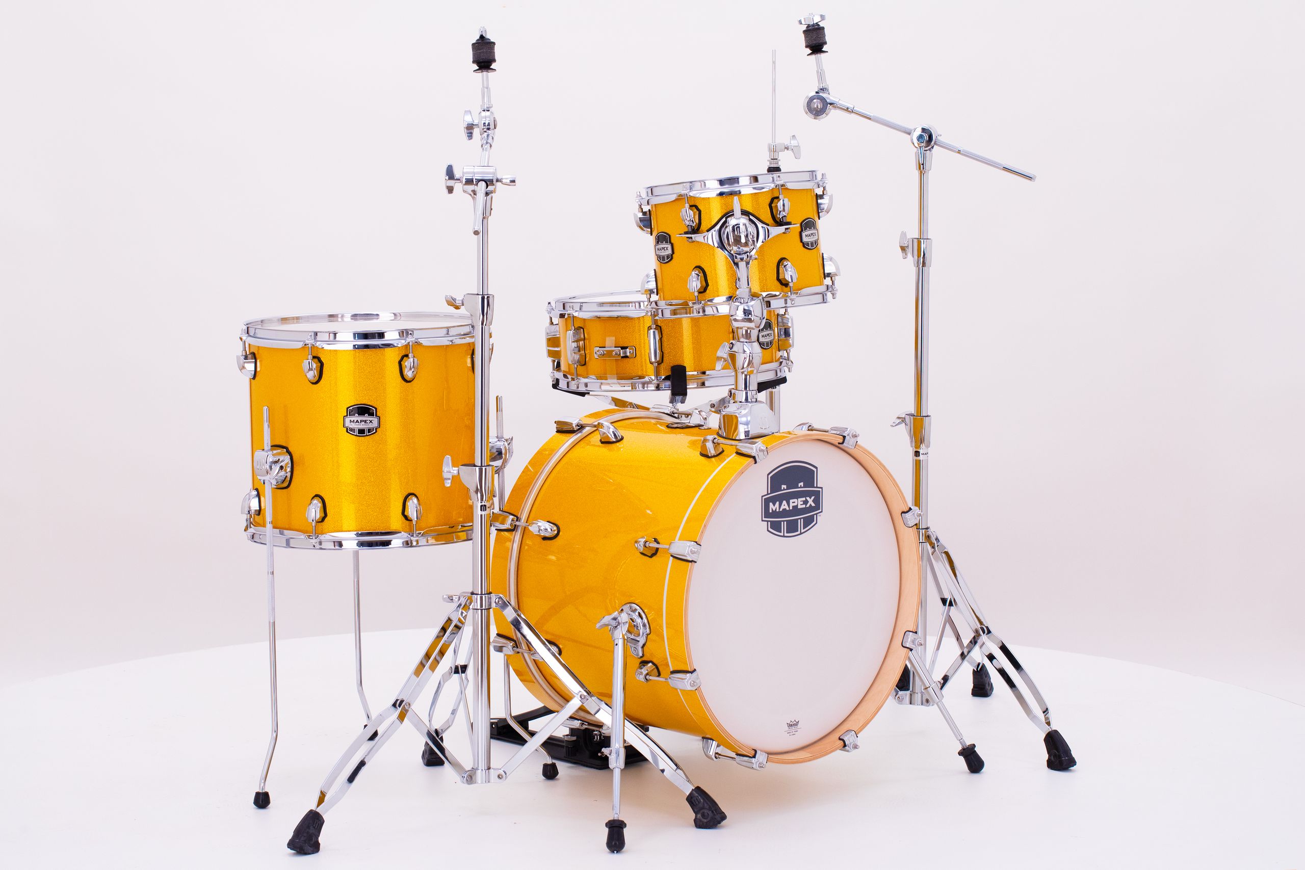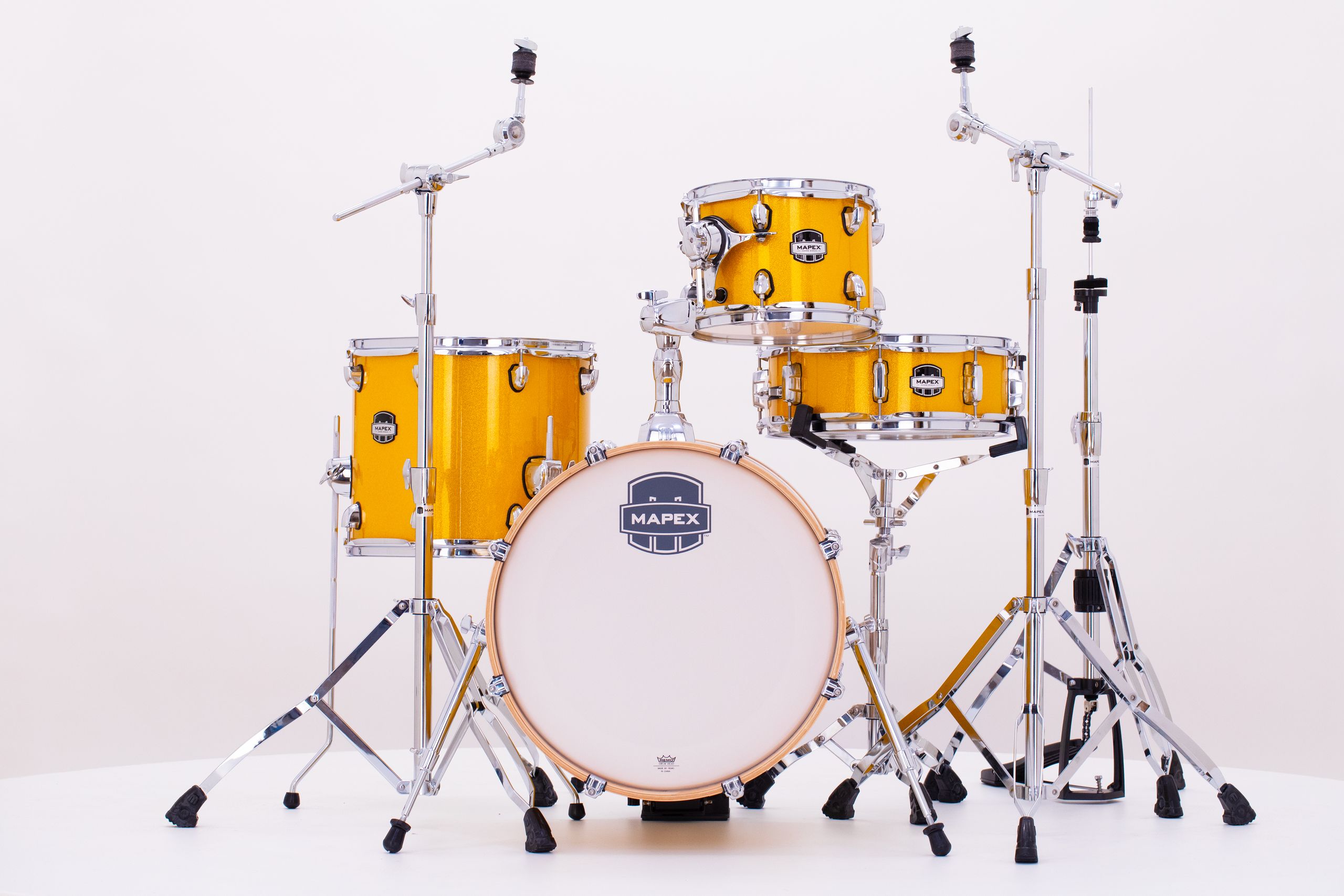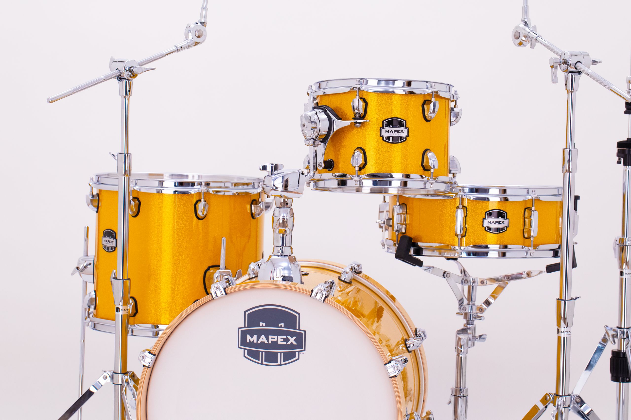 The Mars Series “Bop” Shell Pack features a 1 up and 1 down compact setup featuring an 18" kick drum with a massive sound. This is the configuration you need when space is limited and you require response, power, and control. 4-Piece Bop Shell Pack in Sunflower Sparkle. 18x14 Bass Drum, 10x7 Rack tom, 14x12 Floor Tom, Matching 14x5 Snare, TH683 Single Tom Holder