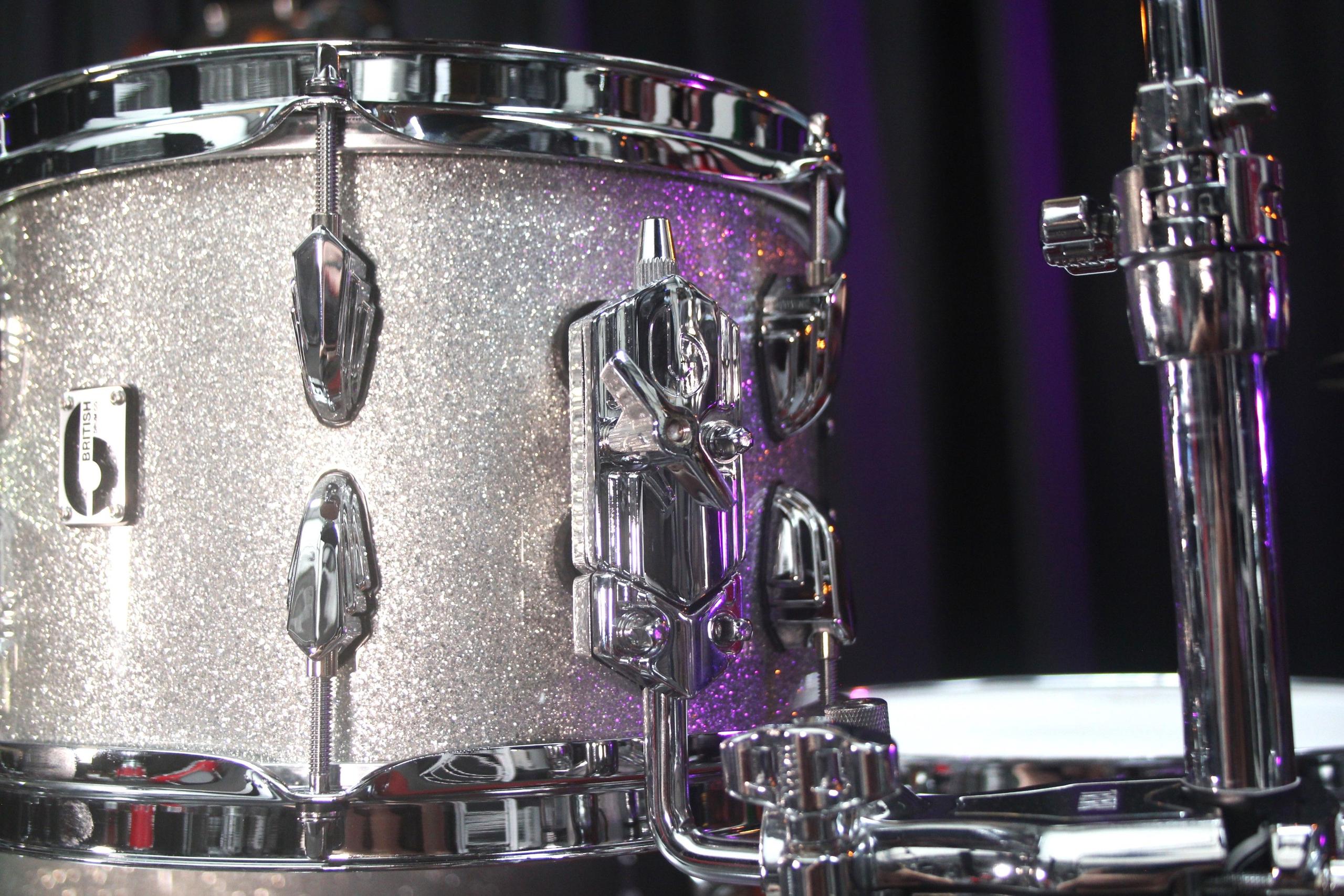 All British Drum Co. drums proudly display their branded, laser-cut B badge revealing the shell finish in the negative space of the badge design.