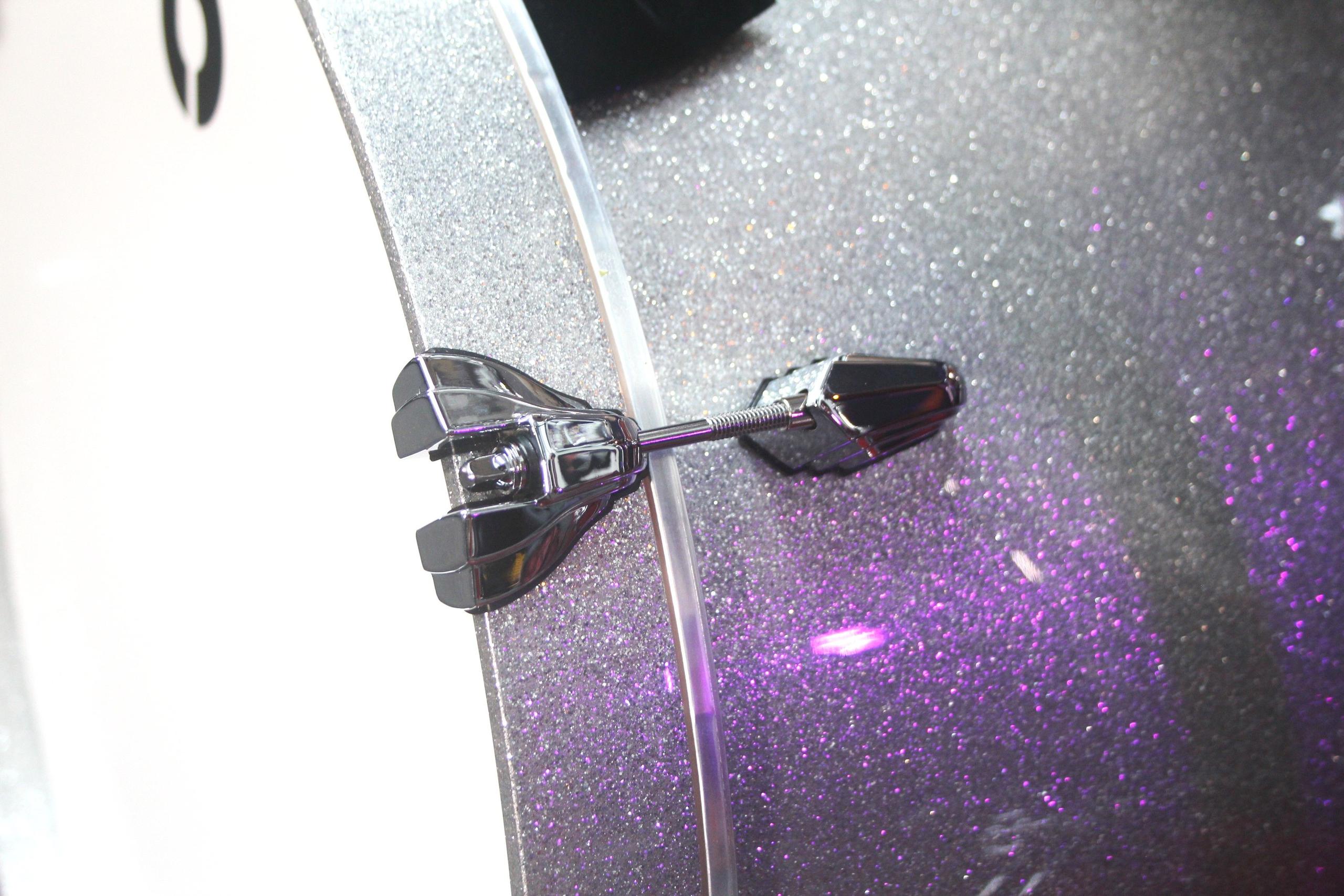 The Art-Deco aesthetic of the Palladium bass drum claw is subtly enhanced by a black thermoplastic elastomer (TPE) gasket which gives added protection to the surface of the Legend Series bass drum hoops.