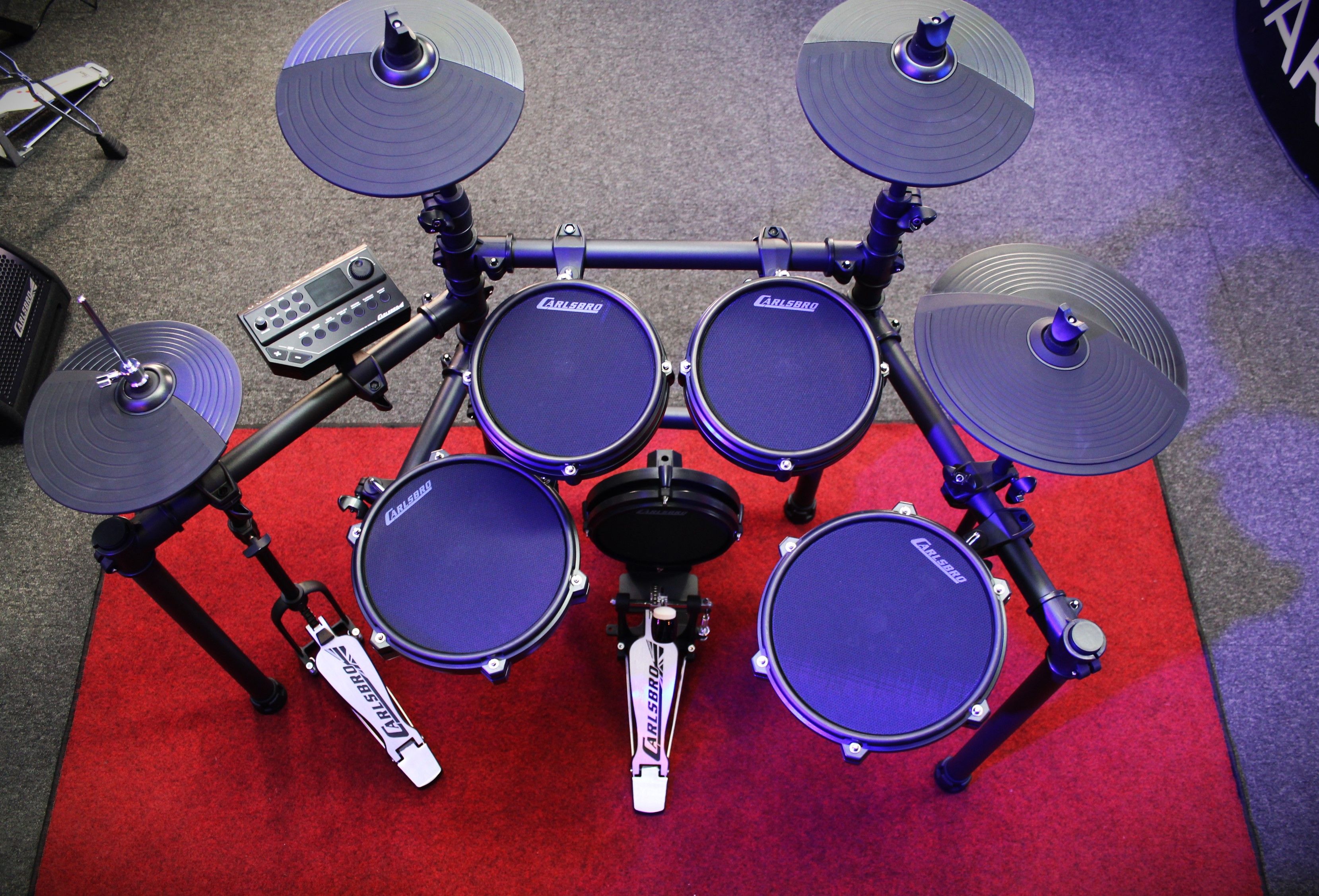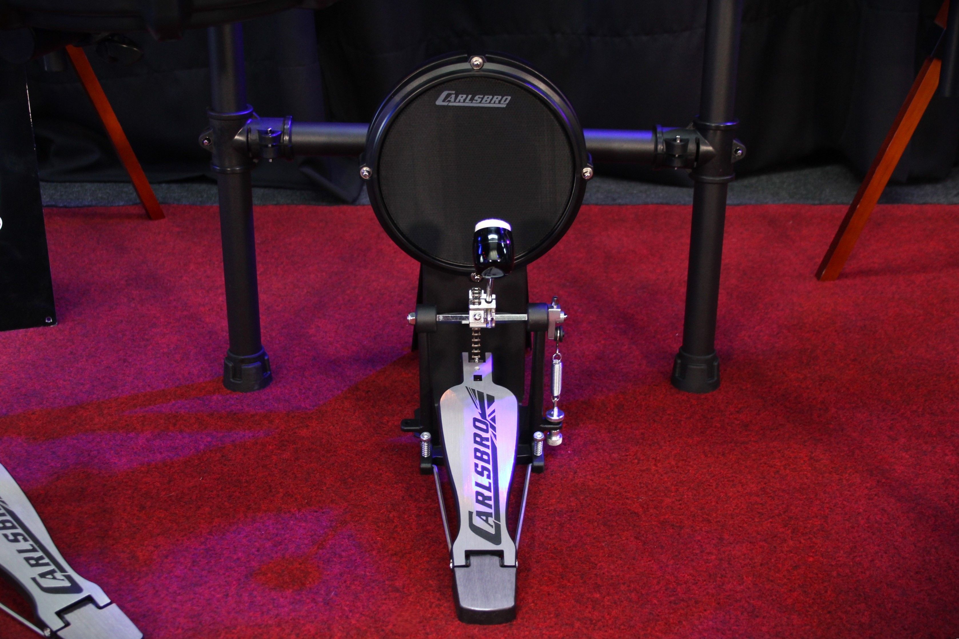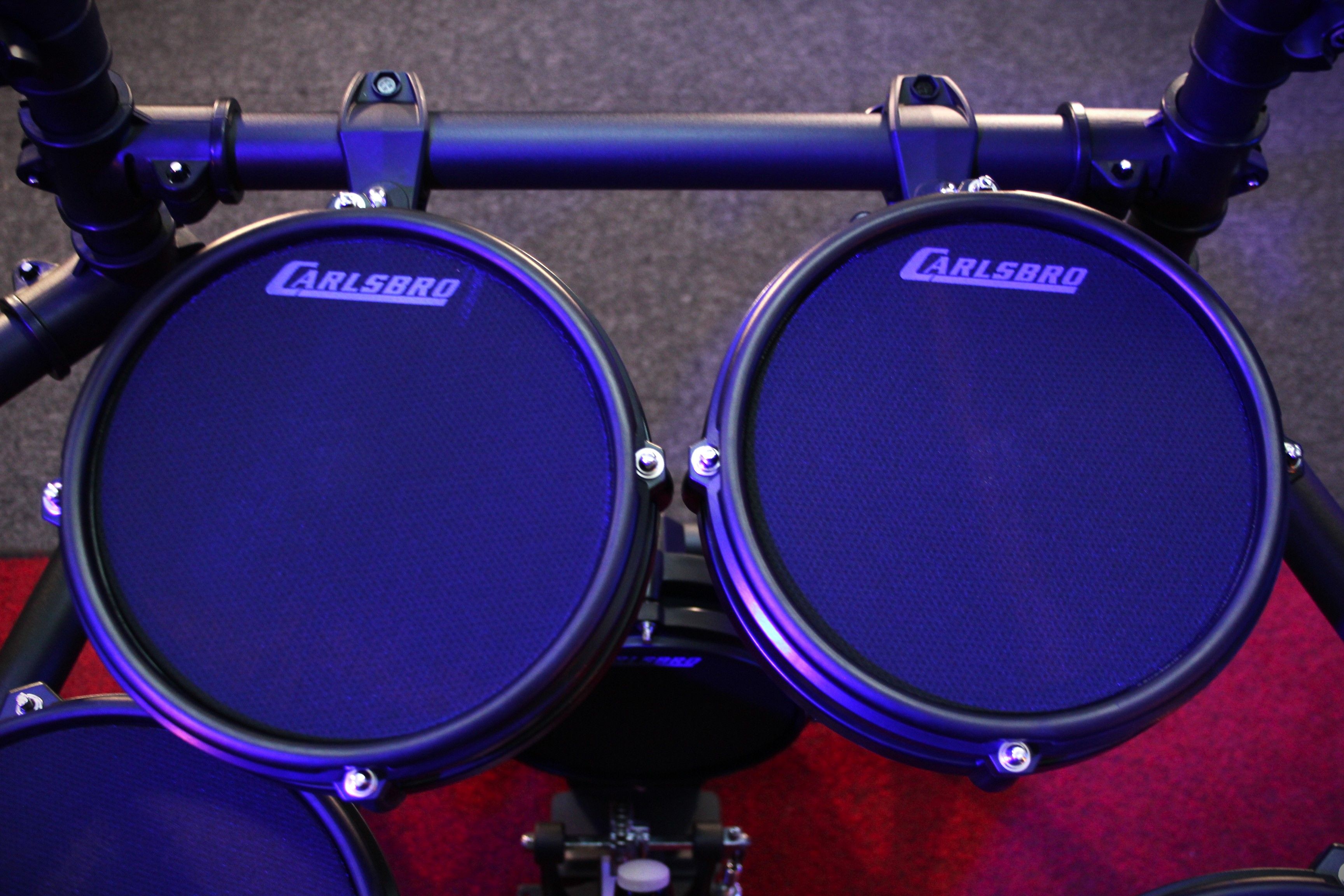 The CSD45M comes standard with an 8" mesh bass pad and Carlsbro kick pedal, Unique to the CSD45M is the frame attached legless open/close hardware hi-hat stand which emulates acoustic drum kit playability and feel. It’s small footprint allows for free placement of double bass pads and pedals without compromising your stance and comfort.