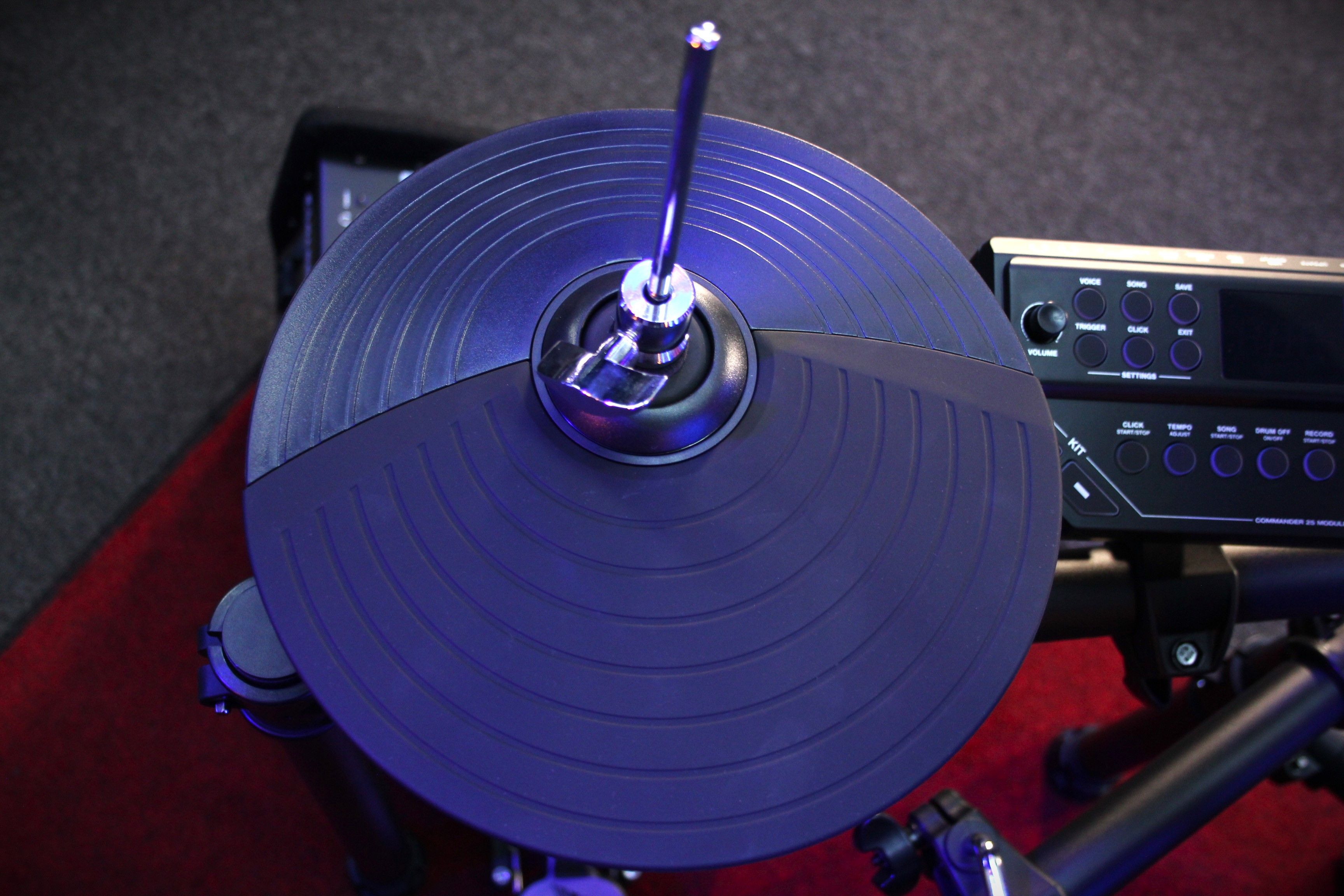 The COMMANDER25 also contains their advanced drum kit builder software allowing you to create up to 10 user defined drum kits that will be stored directly on the module. Pick your drum sounds for each individual pad, adjust the pad volume, pad tuning, stereo panning and reverb level of each pad. Save your custom creations and build your ultimate drum kit.