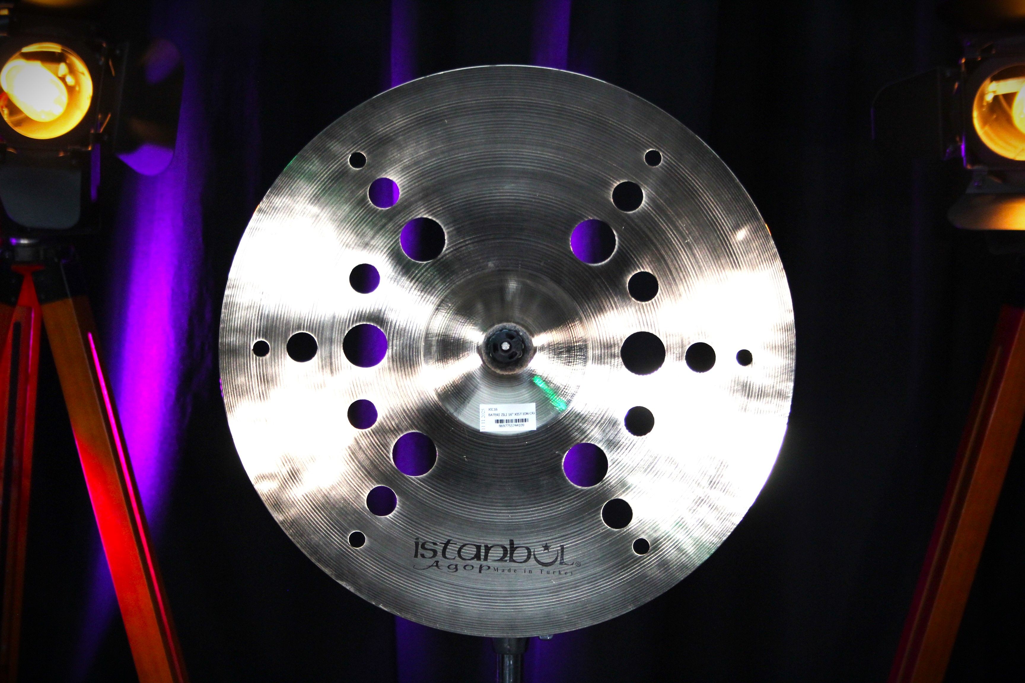 The symmetrically placed geometric holes give this crash a splashy, raw attack with a very quick decay. Great for accents, hand drumming or in a stack with other cymbals.