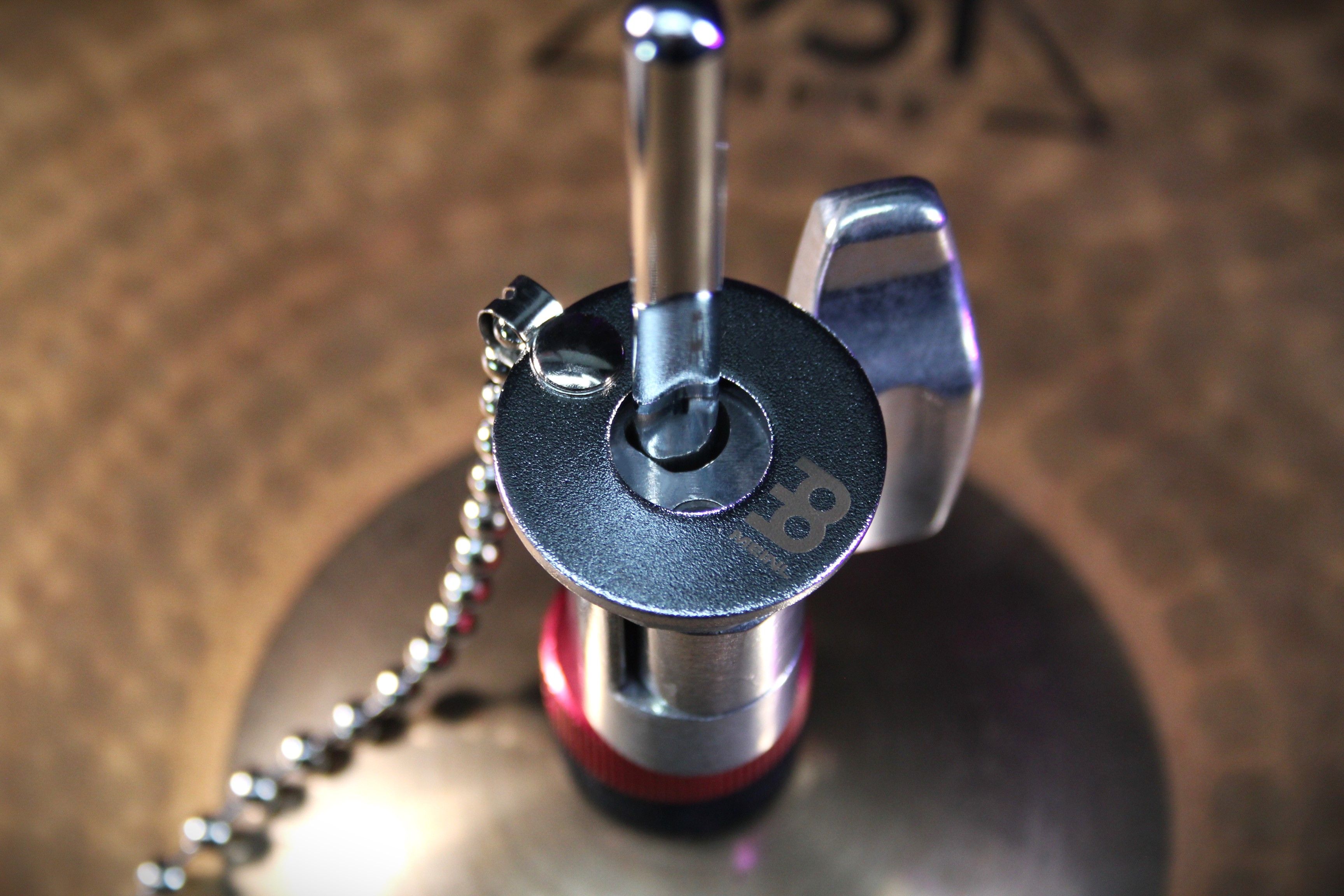 The Meinl Cymbal Bacon adds a sizzle sound to any ride, crash, or effect cymbal in your setup. From traditional and brilliant to raw hand hammered cymbals, the lightweight Meinl Cymbal Bacon adds an instant effect without harming cymbal surfaces or dampening cymbal sustain. The thin washer is made to fit on any cymbal stand and may be placed underneath or on top your cymbals felts (or use without felts). This simple design allows you to grab the Cymbal Bacon and place on any cymbal throughout your performance with no hassle. Instead of drilling your cymbals to add metal rivets, the 10 ½" stainless steel beaded chain will bounce on the top of your cymbal, providing a sizzle sound that can be used in any setting from jazz and funk to fusion and pop.