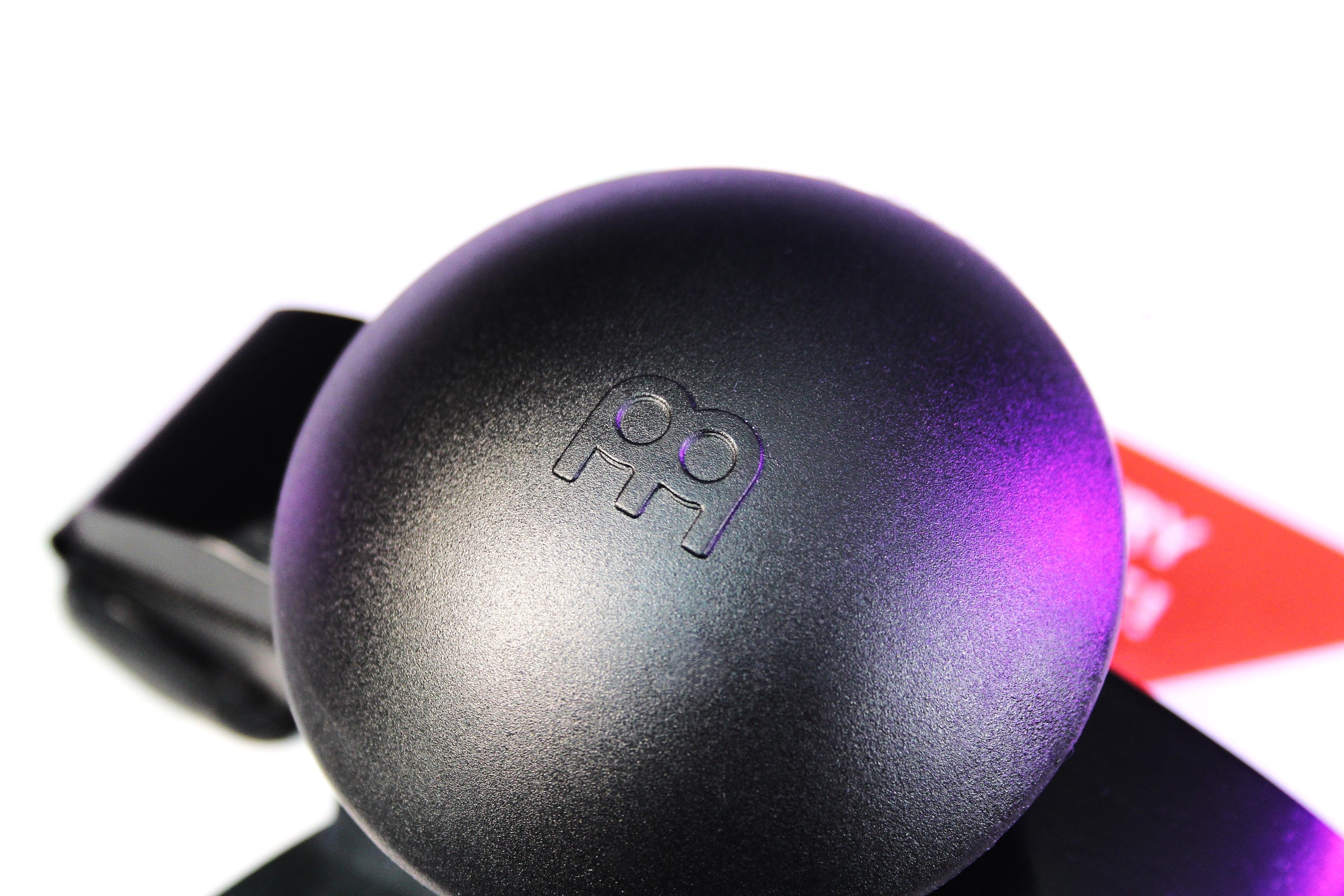 The shaker is placed at an angle on the strap to produce a short, controlled sound.