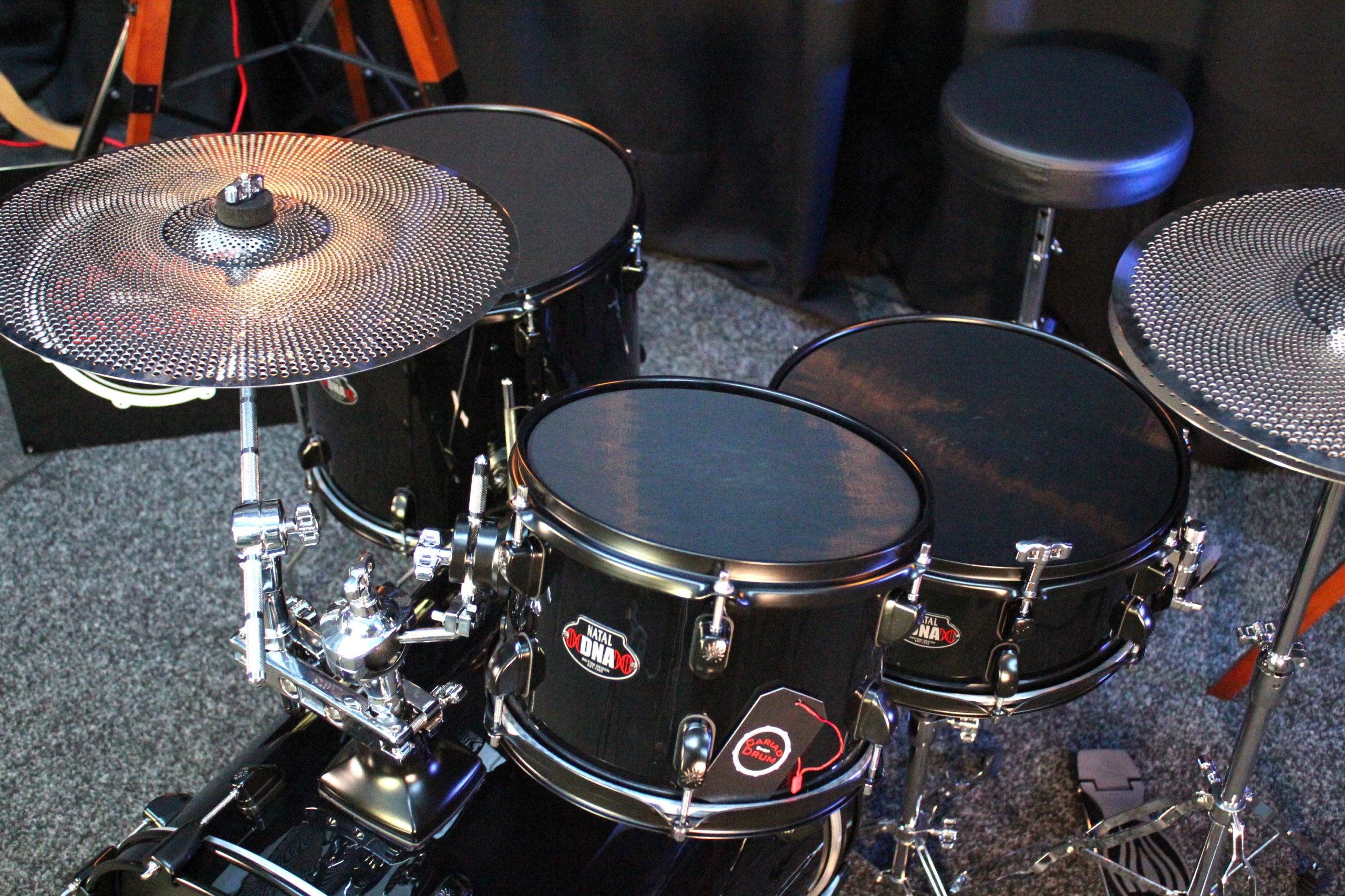 The DNA Stealth comes complete with shells, mesh skins, hardware, low-volume cymbals, kick pedal, throne and even drumsticks; everything you need to get drumming straight out of the box.