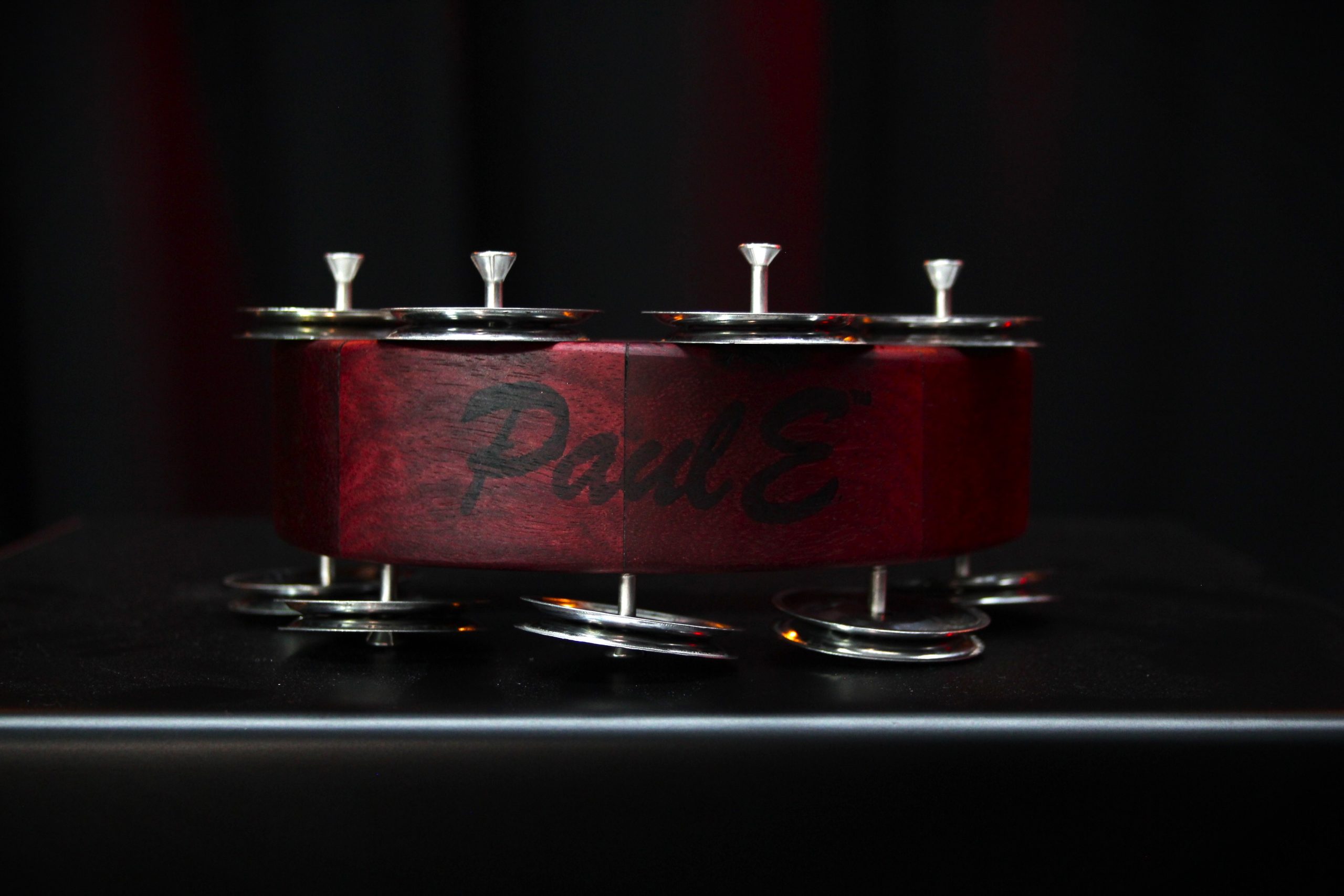 Inventing and creating unique works of percussive art has been PaulE’s passion since he crafted his first drum in 1996. Handcrafting each individual product, PaulE creates unique designs that utilise a variety of woods, jingle materials and various finishes. His works are now available exclusively at Cariad Drum Shop.