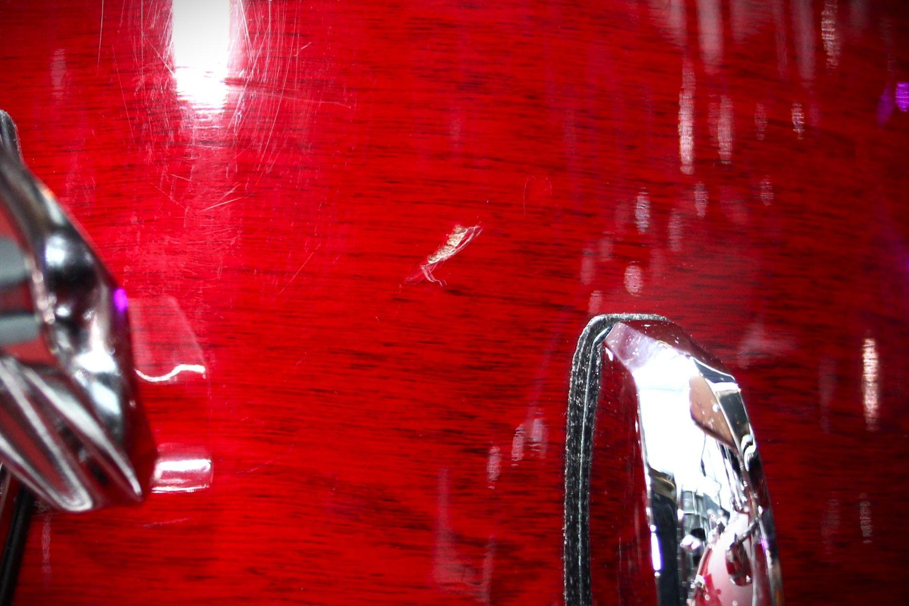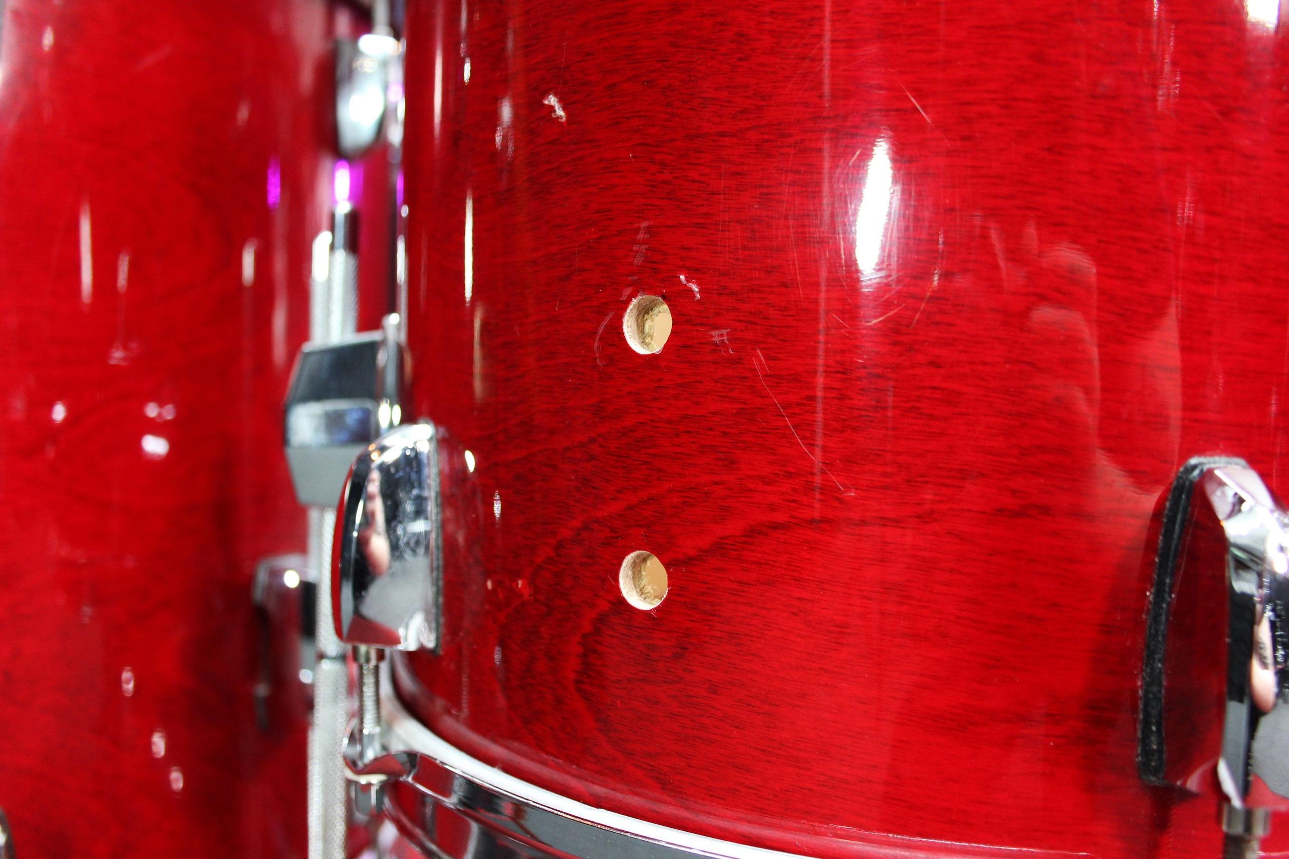 Pre-loved but still in good condition. Has a few surface defects such as slight denting and scratching throughout the kit. Along with rusting and scratching on the hardware. This does not effect the sound of the kit and is only a cosmetic defect.