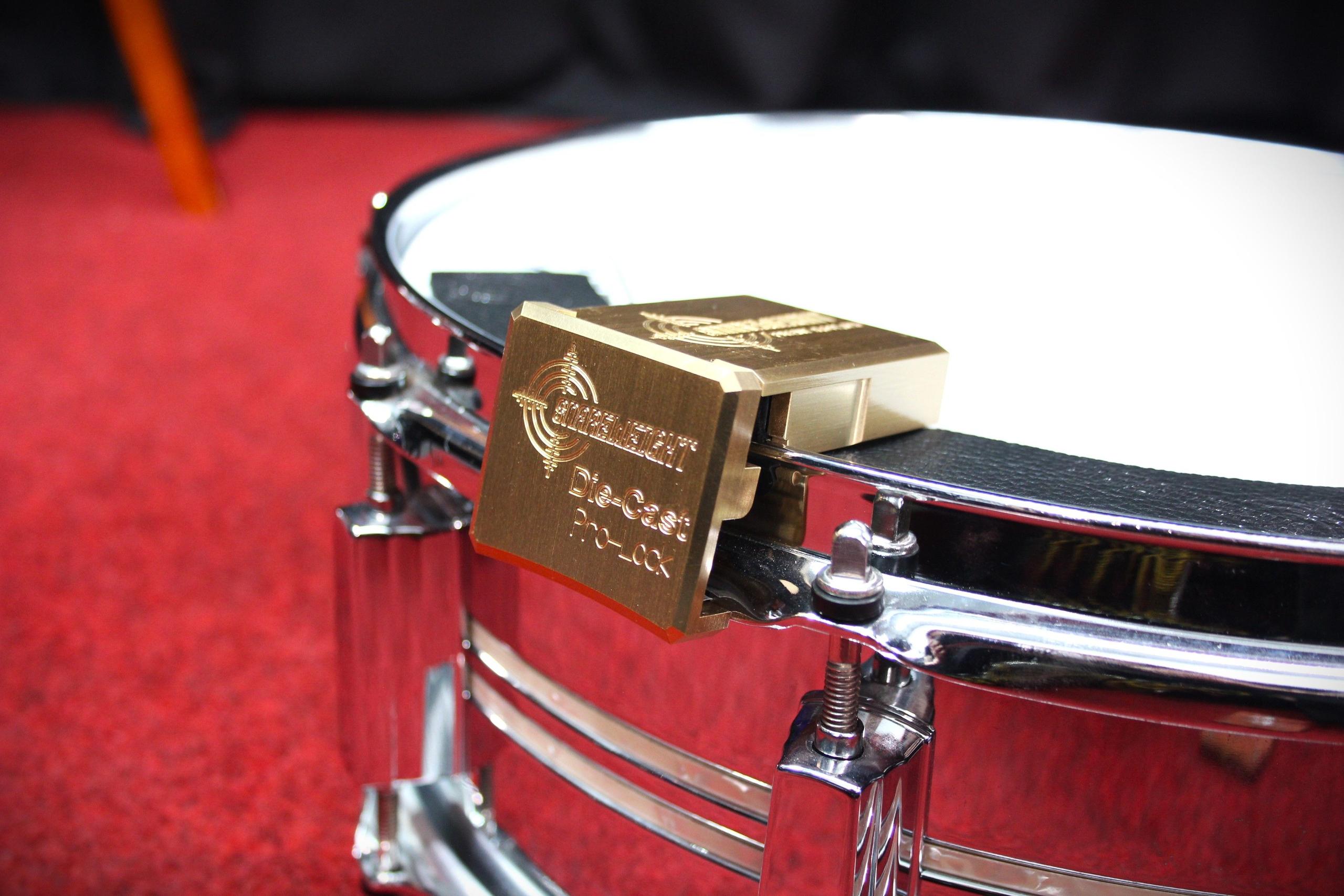 Snareweight has designed the Pro Lock to work with your Snareweight #4 or Jr dampening system to provide a solid grip on any drum head to prevent it from unhinging during hard hits to the drum. The Pro Lock also allows for your Snareweight to be connected to any drums that feature die cast hoops.